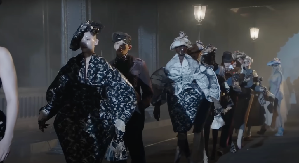 Haçan-da Pariž alagaraňkylygyň ýapynjasyny egnine atanda, «Maison Margiela-nyň» modelýerleri Aleksandr III-niň adyny göterýän köpriniň aşagynda Jon Galýanonyň fantaziýasyndan dörän eşikleri geýnip çykdylar. Tükenikisiz tüçjarlygyň we mümkin däl derejedäki garyplygyň howasyny getirýän bu köýnekler, hamana diýersiň, muzeýde goýuljak eksponatlar ýaly, geýmäge-de dözer ýaly däl.