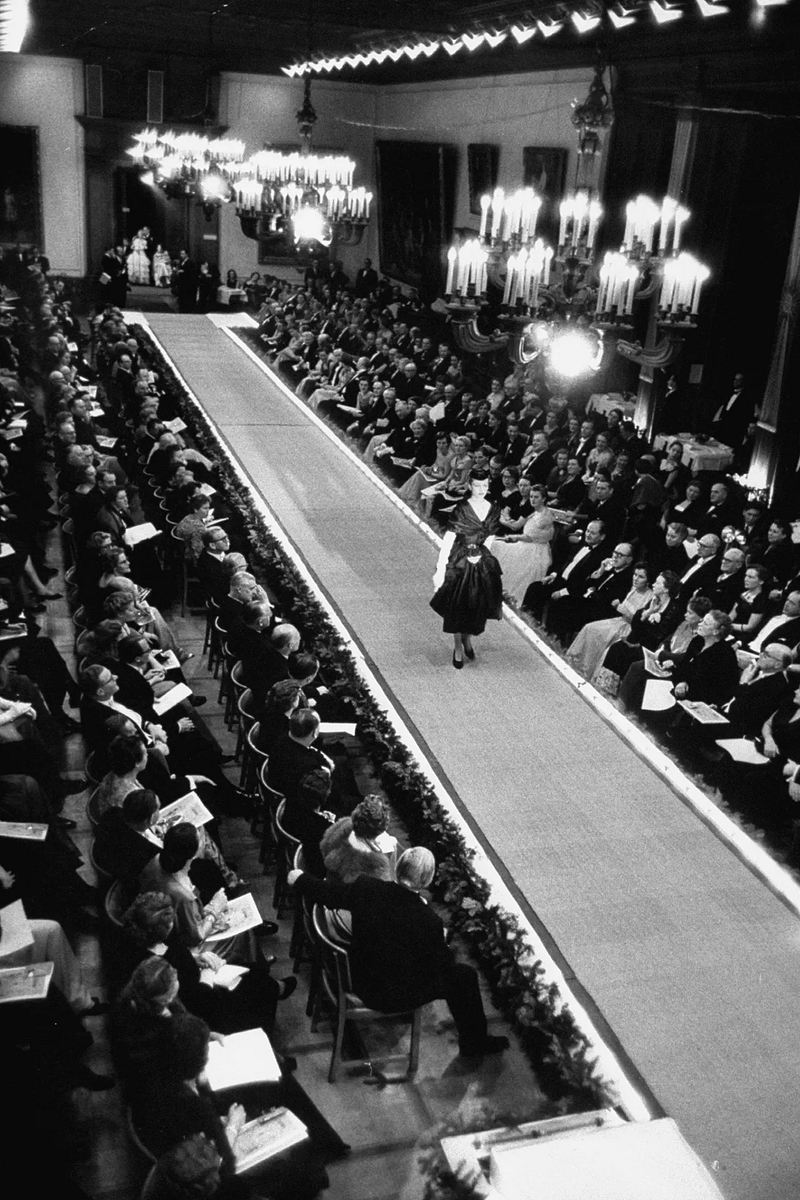 Dizaýnerler öz işleriniň göçürilmeginden gorkup, metbugat wekilleri we suratçylar üçin salonlaryň we moda görkezilişleriniň gapysyny köp wagtlap ýapyk saklaýarlar. Bu kadany ilkinji bolup Kristian Dior bozýar we suratçylary moda görkezilişine çagyryp başlaýar.