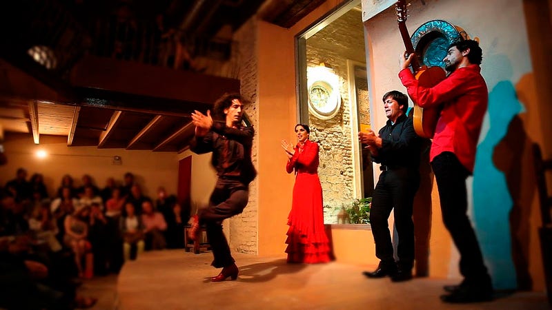 Asyl bu medeniýetiň nireden çykyp gelendigi we haýsy medeniýetlerden täsirlenenligi barada gyzyklansak ýene-de taryhyň gädiklerine duş gelýäris. Taryhçylaryň aýtmagyna görä, bu medeniýetiň agzalary ilki Hindistandan çykypdyrlar, uzak ýoluň dowamynda pars medeniýetinden, müsür medeniýetinden, jöhüt medeniýetinden we arap medeniýetinden täsirlenip, şu wagtky bilinýän flamenko aýdym-saz we tans žanry döreýär. Muňa iň köp magrybly musulmanlaryň medeniýeti täsirini ýetiripdir. Şonuň üçin bu medeniýet, ýokdan bar edilmän, eýsem birnäçe medeniýetlerden bölekler alnyp, puzzle ýaly düzülen. Bu medeniýetiň agzalaryna “gitano/gitanos” diýilýär, bu jemgyýetiň agzalarynyň esasy ýaşaýan ýerleri Ispaniýanyň Andalusiýa böleginde; Sewilýa, Kadiz, Granada ýaly şäherlerde has köp duş gelýär. Olaryň bu şäherlerde duş gelmeleriniň sebäbi hem şol, Ispaniýanyň Andalusiýa böleginiň 800 ýyldan gowyrak musulmanlaryň eýeçiliginde bolmagy. Ferdinand II-niň ol ýerleri basyp almagynyň netijesinde ýerli halky katolik etmeklik üçin alnyp barlan syýasatyň soňunda 50000-den hem köp ýerli musulman, gitanos we ýewreýleriň dinini üýtgetmegine getirdi. Ferdinand II-niň basyp almagy bilen ispan bolmaýan ähli milletler ejir çekýärdi, şol ejirleriň täsiri, durmuşyň kynçylygy flamenko aýdymlary bilen beýan edilip başlanýar we heniz hem dowam edýär.
